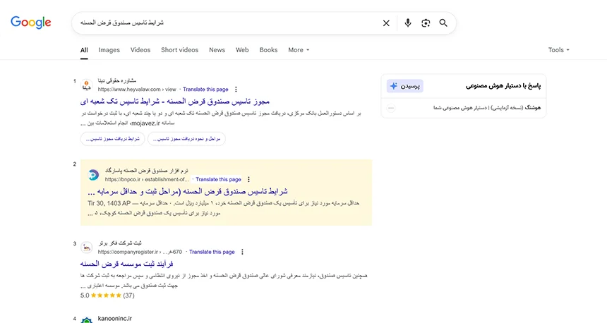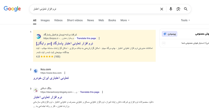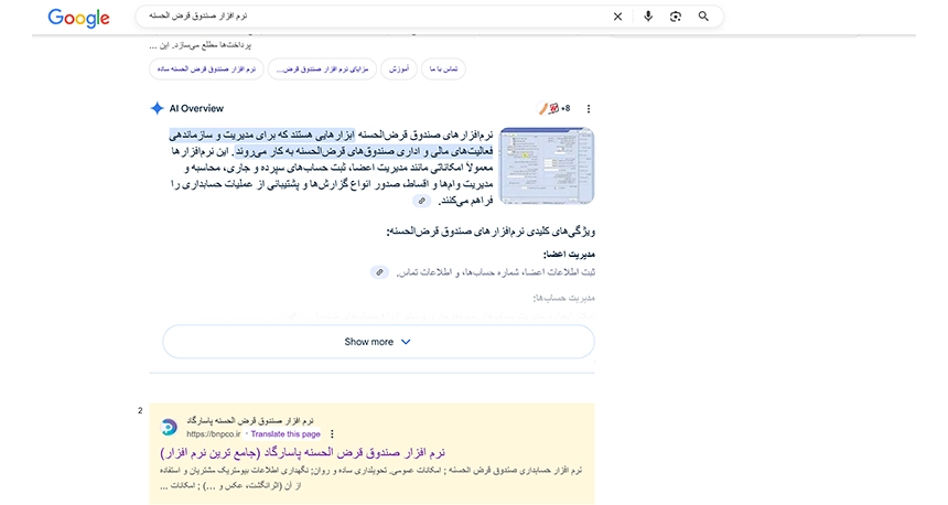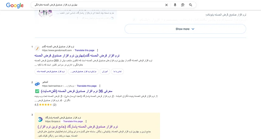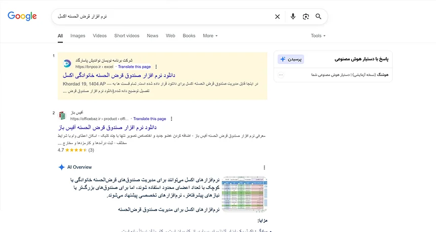 در زمان شروع همکاری، سایت در کلمه کلیدی مهمی مثل «نرم‌افزار قرض‌الحسنه» جایگاهی بین رتبه‌های ۱۲ تا ۱۴ داشت و عملاً در حاشیه رقابت قرار گرفته بود. با رفع مشکلات فنی و اجرای سئو تکنیکال دقیق، رتبه به شکل قابل‌توجهی تا جایگاه‌های ۷ و ۸ ارتقا یافت.