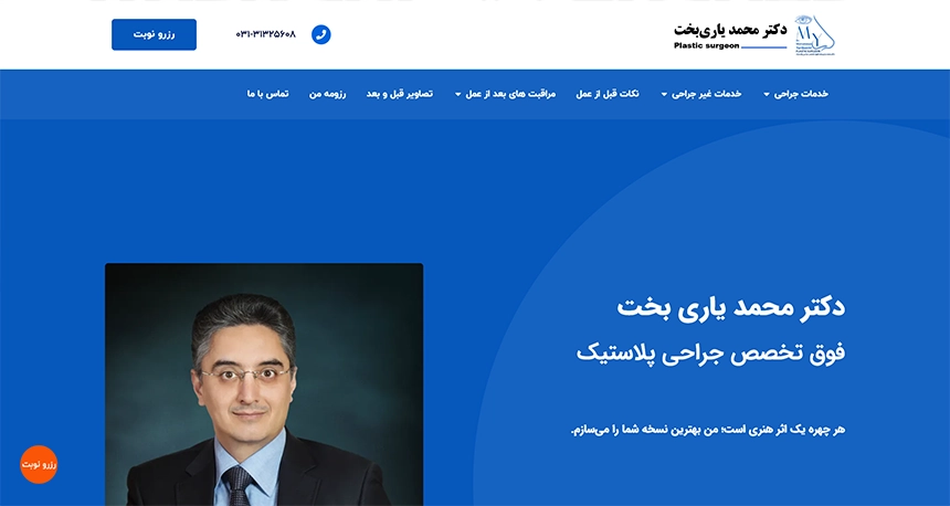 - وبسایت دکتر محمد یاریبخت، جراح پلاستیک شناختهشده در اصفهان، با وردپرس و بهصورت اختصاصی توسط تیم WebStyler پیادهسازی شد؛ از صفر تا صد پروژه، یعنی طراحی رابط کاربری، توسعه فنی، تولید محتوای متنی و تصویری، دستهبندی خدمات، و سئوی ساختاری.